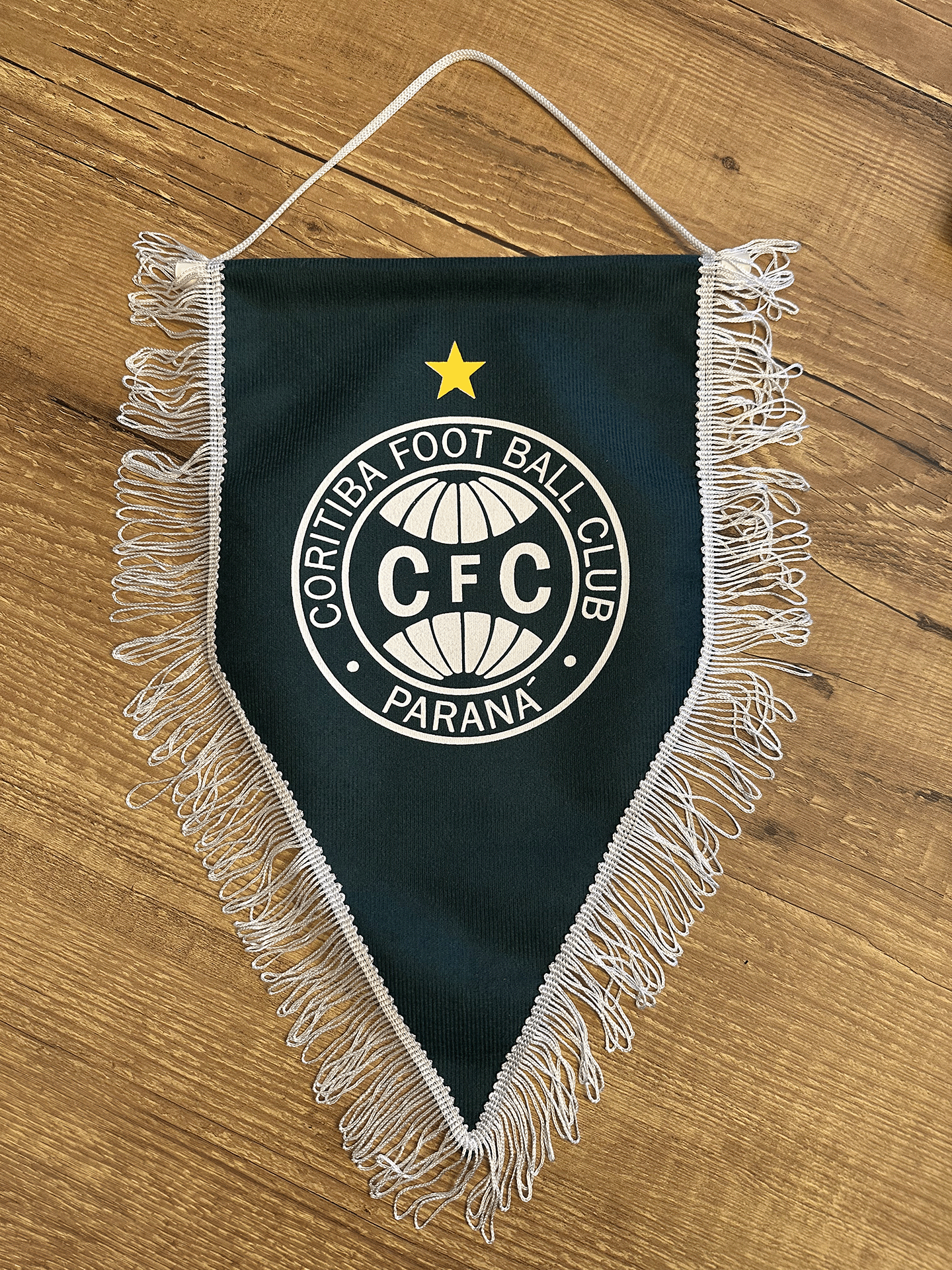 Flâmula licenciada do Coritiba, na cor verde, com o símbolo do Coxa.
